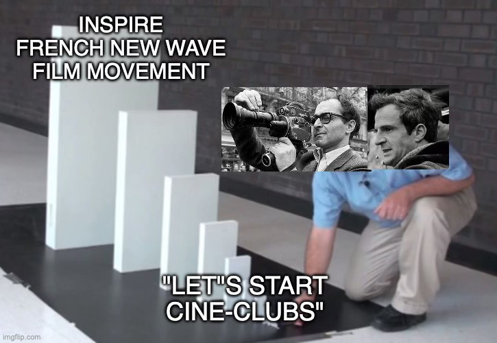 The French New Wave film movement began after future filmmaking giants Godard, Truffaut, and others began joining and starting “ciné-clubs” — groups of people who gathered around their love of film. As the proto-filmmakers became immersed with others who shared their passion, the idea of making movies themselves felt possible. Their passion for film became a talent for making films, changing the course of cinematic history.