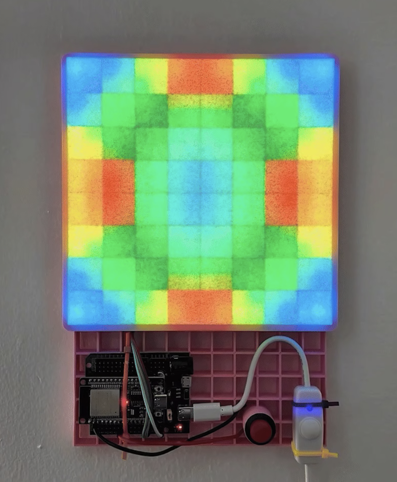 Digital serenity meets physical fidelity in Ceramicism’s exquisite wall piece that shifts between 11 different kaleidoscopic presets. Love the exposed construction, lo-fi digitalness, everything about it. Exceptional work.
