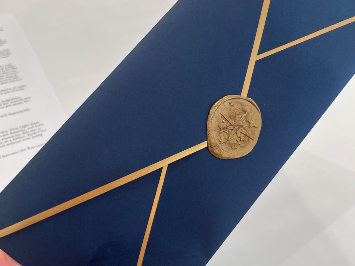 “First Lights are stars that nobody has ever seen before. Through a process done in consultation with research astronomers around the world, the excess and unimportant stars of astronomy are collected, printed, folded, and sealed completely blindly, so that when you open up a First Light, you become the first person in the world to witness it.”