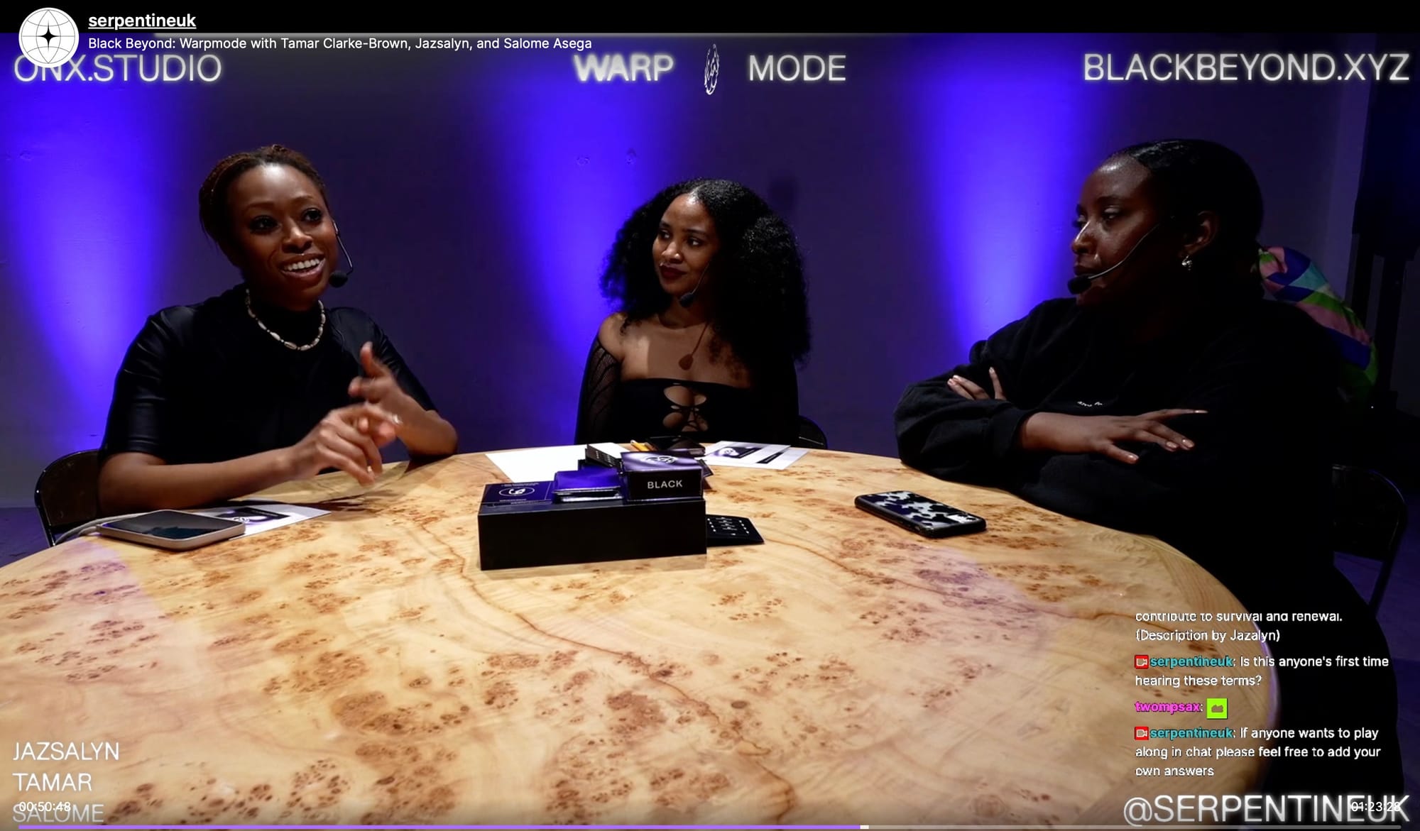 - WARPMODE’s appearance on the Serpentine Twitch livestream.