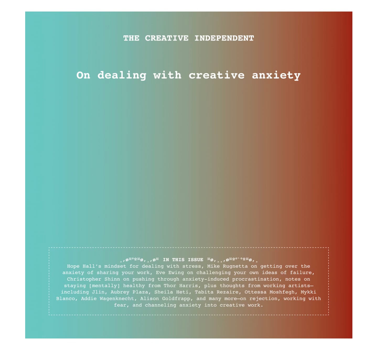 In its second release with Metalabel, the incredible Creative Independent returns to reissue “On Dealing With Creative Anxiety,” a zine of insights by everyone from actress Audrey Plaza to writer Mike Rugnetta to musician Nikki Sixx on how to channel your creative concerns.