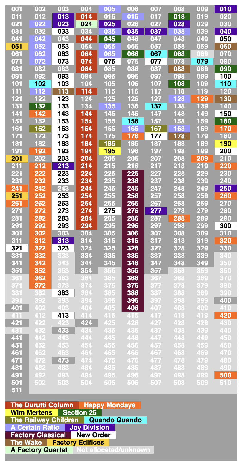 The approach to creating releases was so broad it included a cat that lived at the Hacienda (FAC 191), a lawsuit against the label (FAC 61), and even founder Tony Wilson’s coffin (FAC 501).