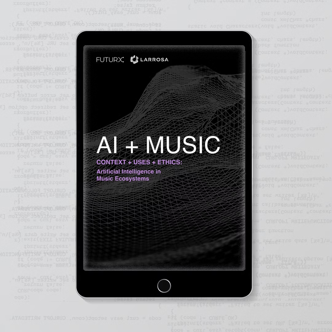 Want to move beyond the usual hype and fear for a more grounded discussion of AI? FUTURX is doing just that with its release AI+MUSIC: Context + Uses + Ethics, co-published with LARROSA. With over 150 members across 20 countries, this Spanish language global R&D initiative is cultivating a decentralized, future-facing community rooted in ethical exploration, collective learning, and the messy, generative space between code and creativity.