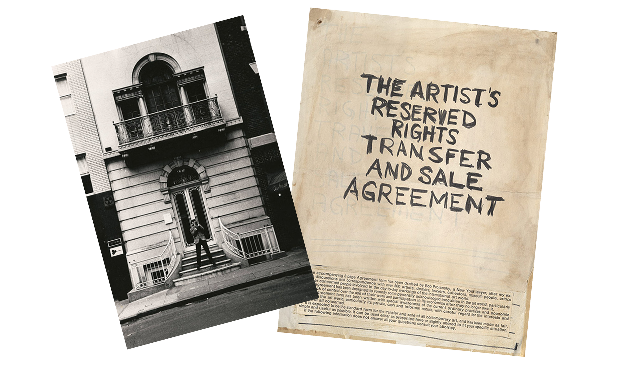 In 1971 conceptual art dealer Seth Siegelaub and lawyer Robert Projansky collaborated to create a new contract for the purchase of visual art. Called “The Artist’s Reserved Rights Transfer and Sale Agreement,” it was, its authors wrote, “designed to remedy some generally acknowledged inequities in the art world, particularly artists’ lack of control over the use of their work and participation in its economics after they no longer own it.”