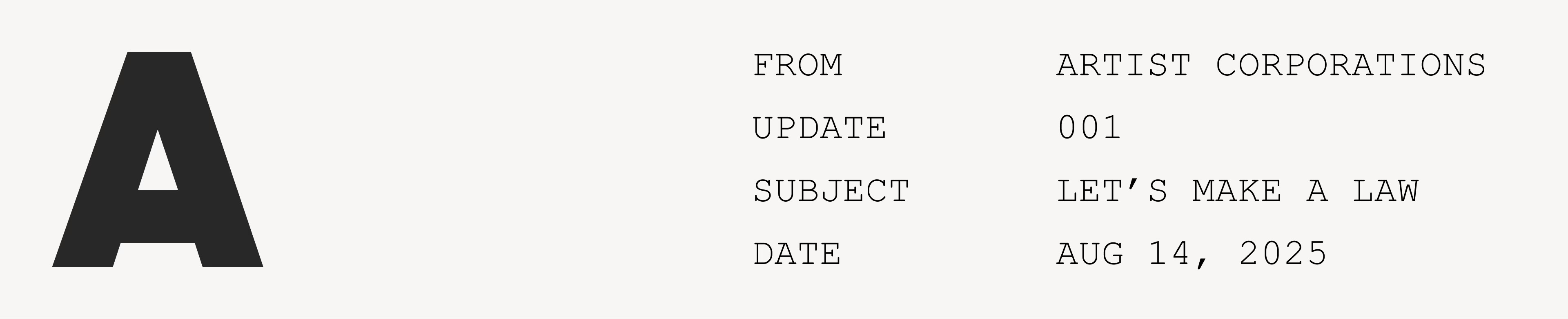 Since this project became public in June, we’ve been working hard behind the scenes to establish connections and follow the process to make Artist Corporations a reality. This means passing laws. Yes, laws.