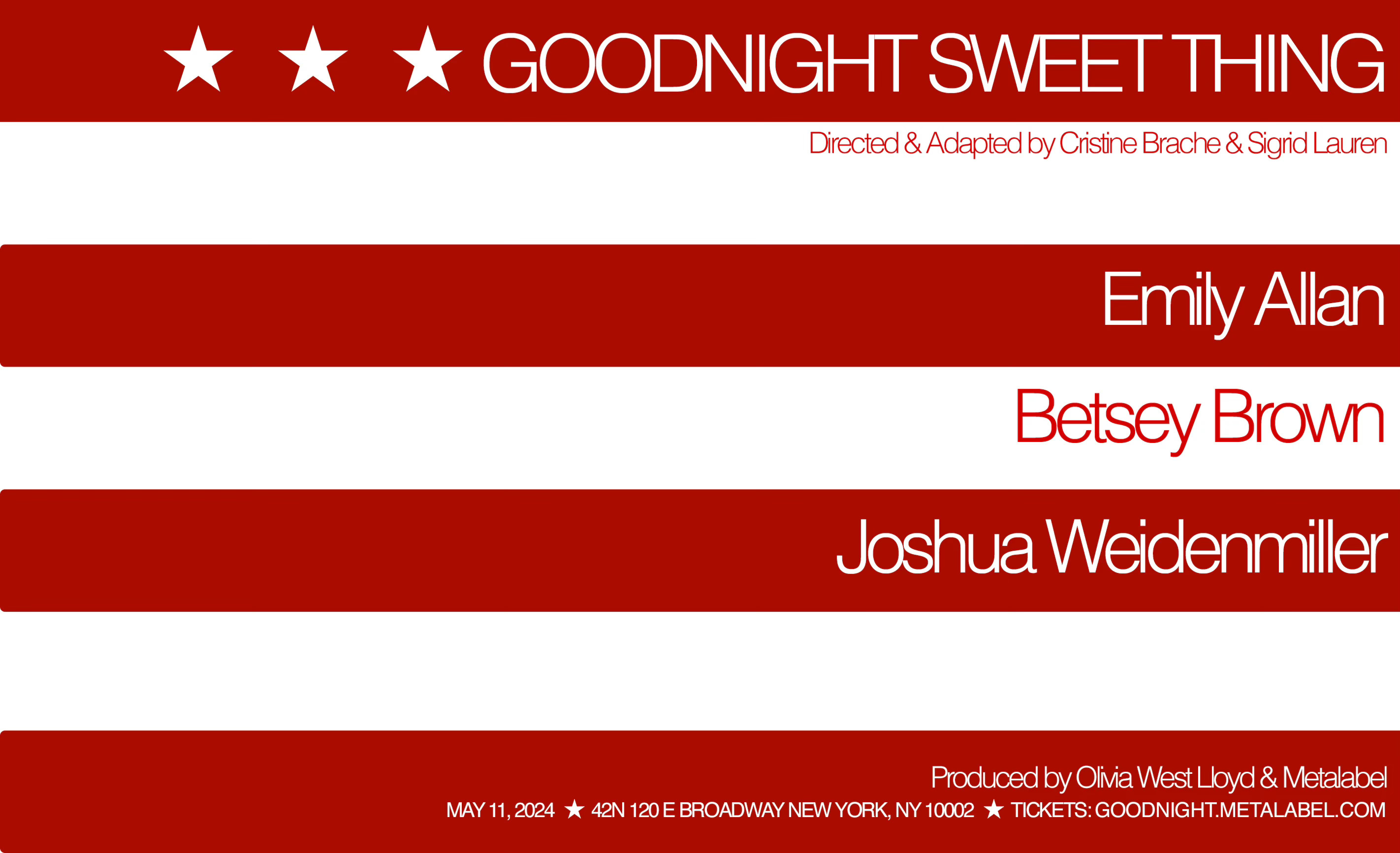 Starring Emily Allan, Betsey Brown, and Joshua Weidenmiller
