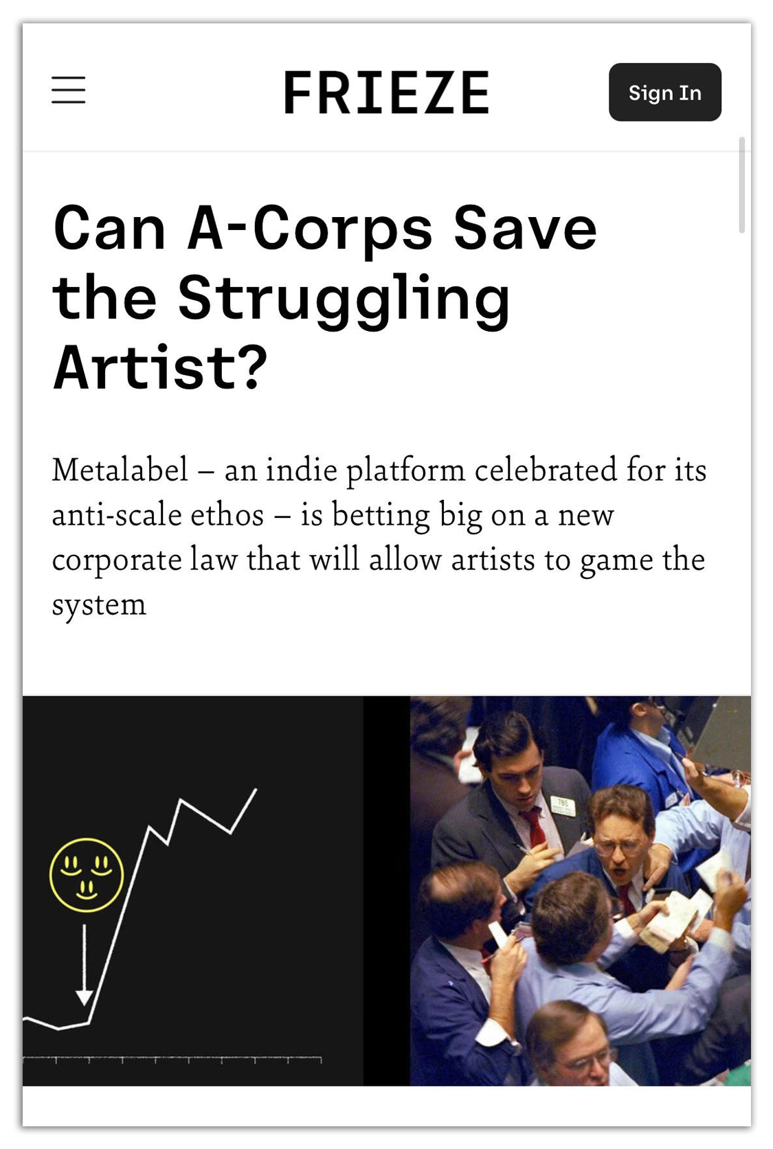 The piece goes on to explore the potentials and potential limitations of A-Corps. Frieze is a very influential and important publication in the art world. Well worth a read.