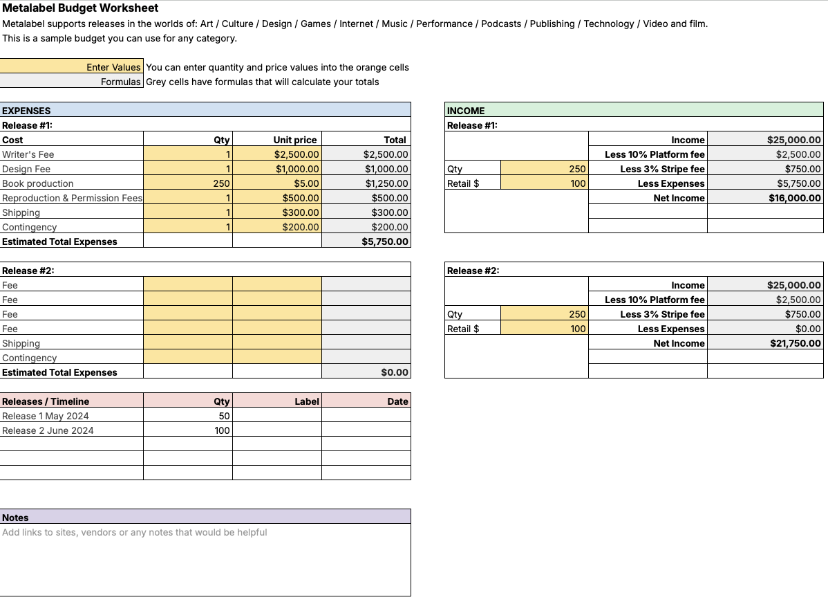 To help with this, we made a worksheet that you can download and use for any project. Input your costs and generate a unit price by toggling the number of works you are hoping to make available for sale.