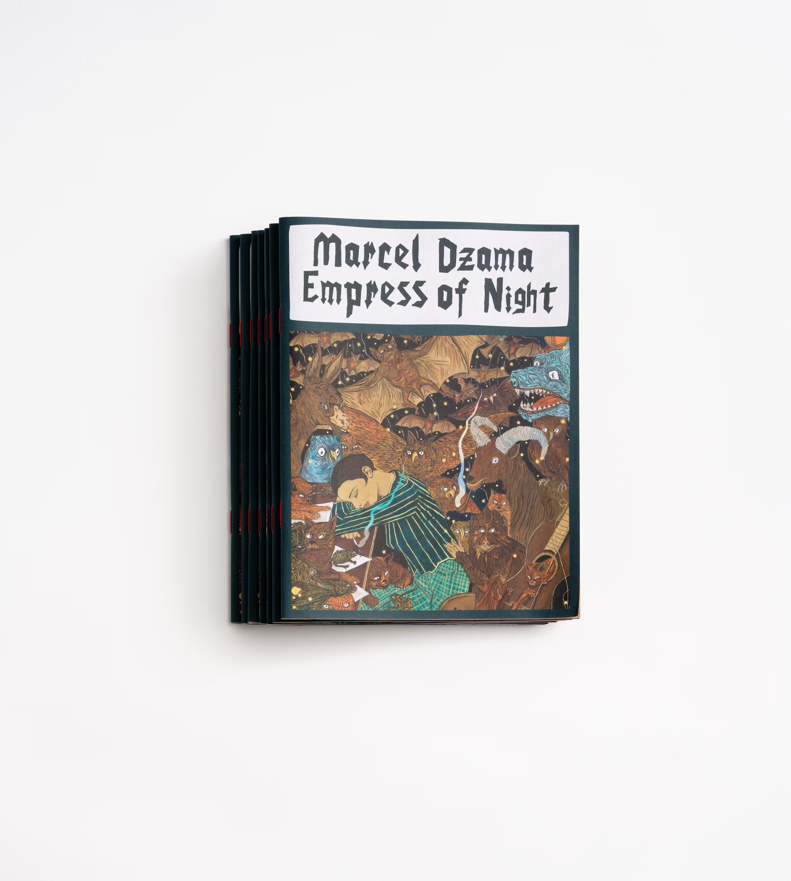 World-renowned artist Marcel Dzama adapts his folklore into a narrative of nightscapes and celestial characters for this artbook zine — his debut release on Metalabel. Produced alongside his newly opened David Zwirner show in Los Angeles, masked women in the river dance amongst anthropomorphized animals and dense junglescapes under expansive skies dotted with stars and moons.